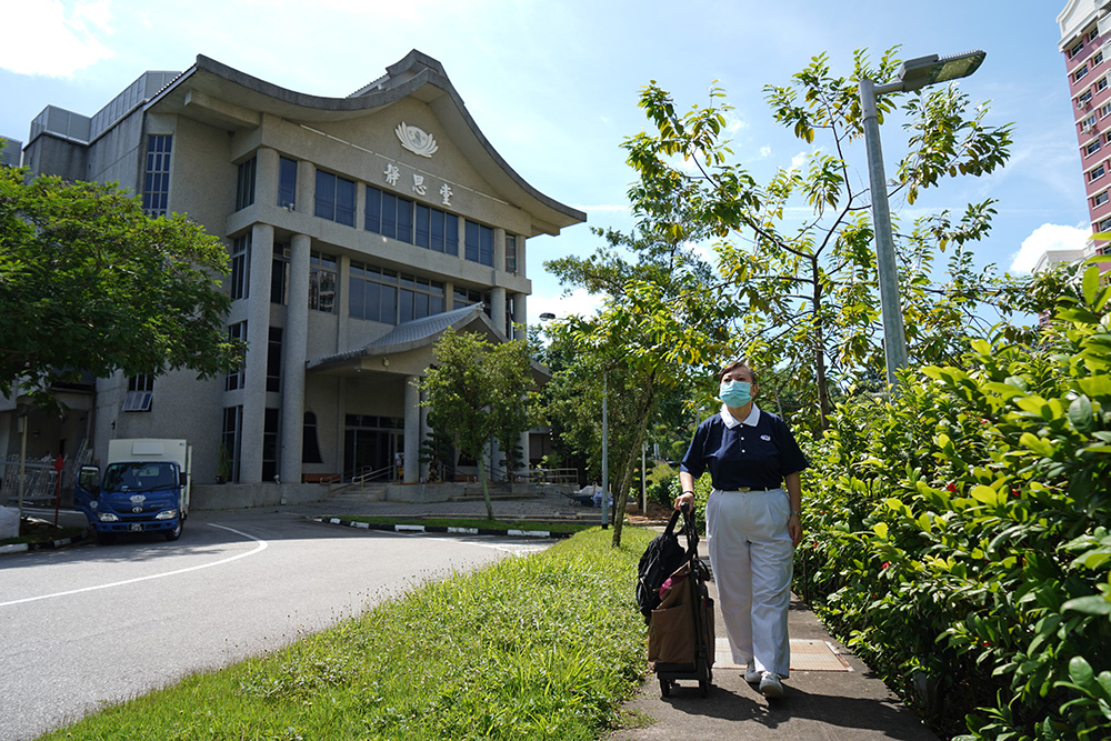 Lee Sok Kuan returned to work and joined the home care team in Khoo Teck Puat Hospital. She was in charge of taking care of patients recuperating at home. Lee has a lot of experience handling the elderly with dementia and patients with mental illness. Every day, she worked proactively and found joy in helping others. During that time, she began to join Tzu Chi after knowing that she could help more people in the Missions of Charity and Medicine, and she loved Tzu Chi's philosophy of "giving without asking anything in return". Later, she realised that her working hours were too long and decided to leave the workplace and devote herself to Tzu Chi by becoming a full-time volunteer after weighing her spiritual mission and career.