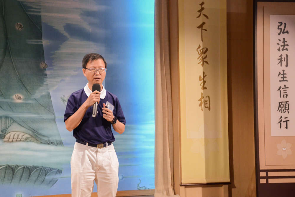 Volunteer Fong Kok Kee shared with the Tzu Shaos about a trip where Tzu Chi volunteers went to Nepal to teach children about food hygiene. (Photo by Chuah Chin Kah)