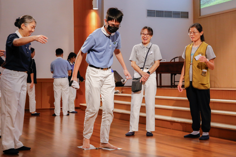 The Tzu Ching curriculum team led everyone in a charity-themed station game. The Tzu Shaos must work hard to complete the games at each station to earn points so as to use them to help disaster victims tide over the difficulties and rebuild their homes.