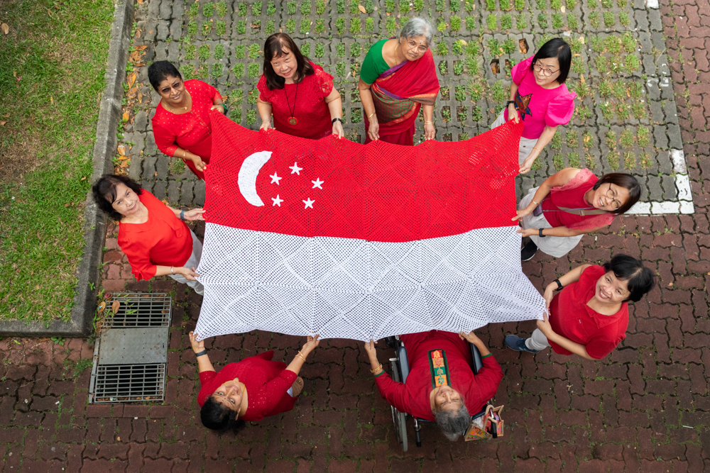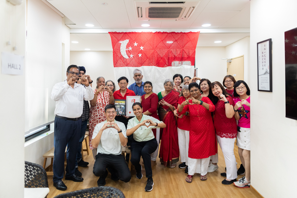 Another team produced a 1.4-metre by 1.8-metre crocheted national flag, which is also listed in the SBOR. (Photo by Donn Tan) "They were highly motivated, and that inspired me. If they can do so much, then we too can do more: organise more activities, bring in more seniors and help them become active," said Nidhi. Weng Foo is to the left of Nidhi. (Photo by Donn Tan)