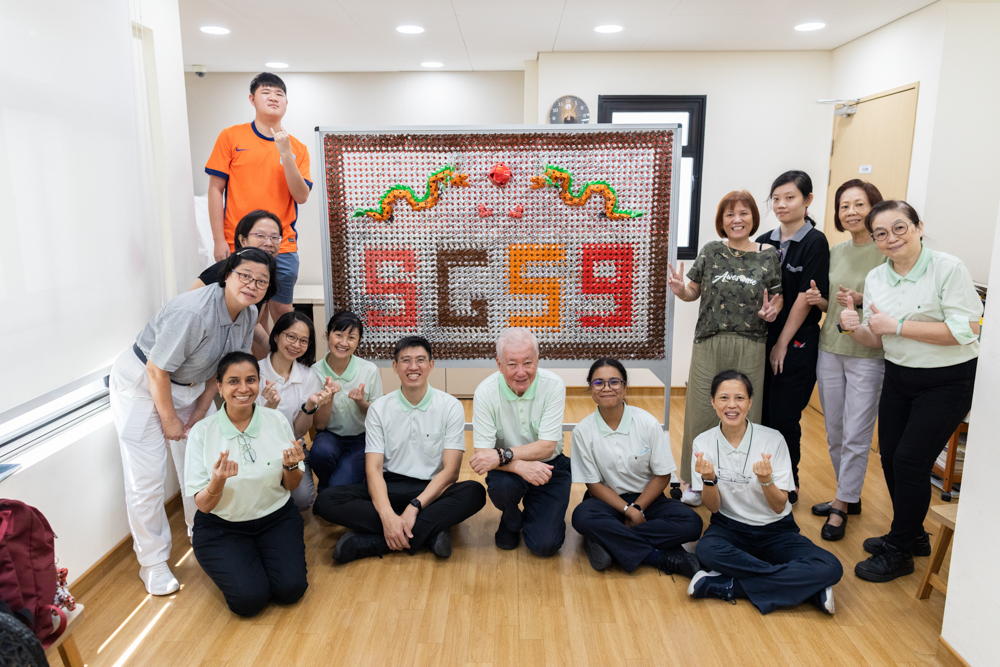 A team of seniors created an SG59-themed 1.2-metre by 1.8-metre upcycled artwork, setting a new entry in the Singapore Book of Records (SBOR). "They showed up every day and spent eight hours per day creating it. We had to remind them to take a break!" said Nidhi. (Photo by Donn Tan)