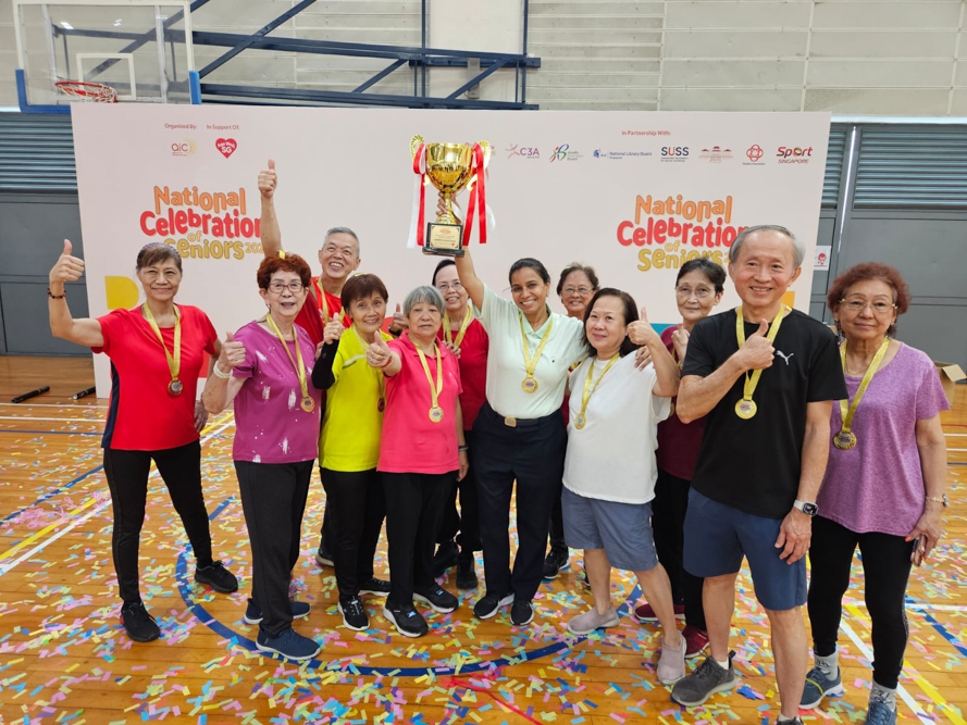Guided by the SEEN @ Bukit Batok team, the all-women Seated Floorball team was crowned Champion while the mixed-gender Captain’s Ball team reached the semi-finals at the 2024 edition of the National Celebration of Seniors. (Photo provided by Nidhi Gupta)