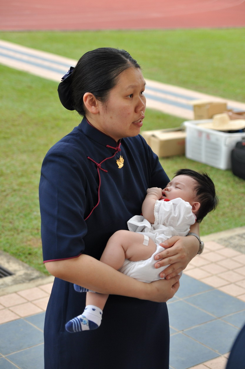 在练习的现场,也不难看到另一位师姊怀抱着小娃娃,身边总是放着一架婴儿推车,那就是李婉君师姊和她家五个月大的懿芯小菩萨。
