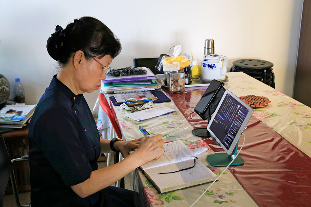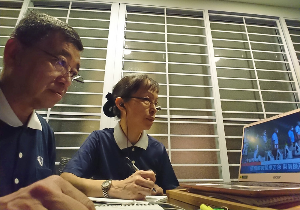 “2021年全球四合一干部精进研习营”透过云端如期进行,360多位新加坡志工纷纷打开电脑、手机或平板,按下链接上线报到,和全球两万多位慈济志工在线上以法相会。(摄影 / 陈三峇)