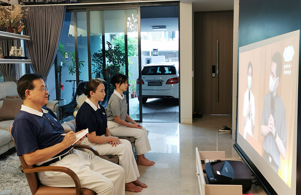 新冠疫情阻断志工返回心灵故乡的路,幸而仰赖科技之助力,“2021年全球四合一干部精进研习营”透过云端如期进行。超过360位新加坡志工准时在早上6点45分纷纷打开电脑、手机或平板,按下链接上线报到,和全球41个国家、两万多位慈济志工在线上以法相会。