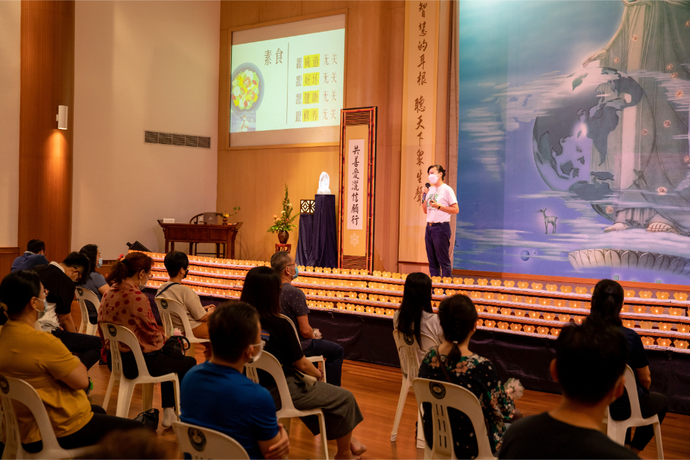 两年前,志工杨雯婷在台湾花莲发起“吃播”推素运动,2020年回到新加坡定居,她继续和本地年轻人同心共济,滚动平台推广素食,激起回响,不仅有忠实粉丝追看每日的直播,也吸引许多人开始尝试蔬食。