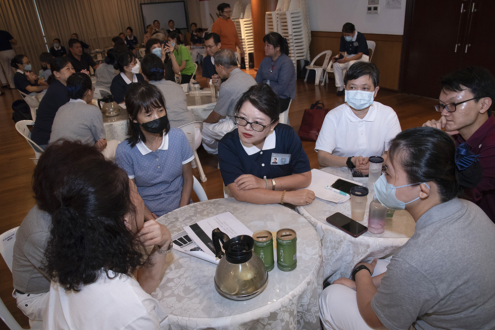 小组讨论环节,志工分享参与慈善访视的历练与心得,新进志工和大德把握机会提问,增加对慈济的认识。(摄/ 伍书永)