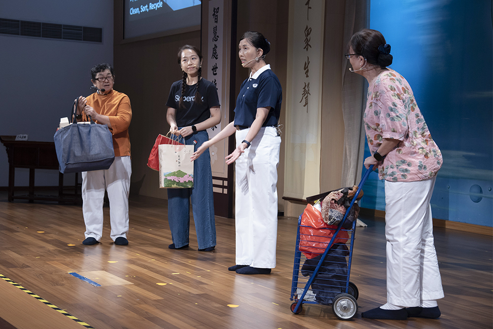 随后一出风趣短剧的呈现,透过祖孙三代的对话,生动演绎了5R环保理念,即拒绝使用(Refuse)、减少使用(Reduce)、重复利用(Reuse)、修复再用(Repair)和循环使用(Recycle),如何在日常生活中得以贯彻。