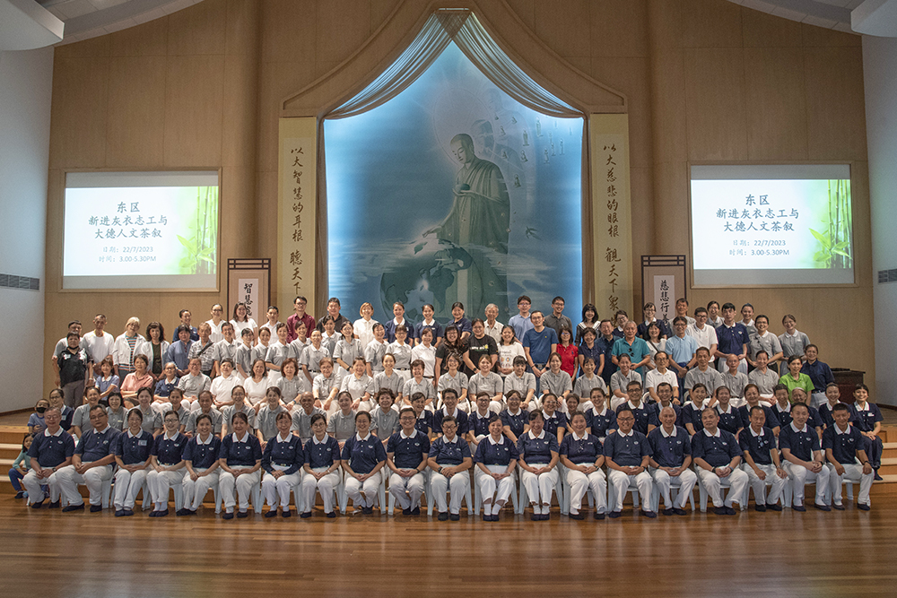 2023年7月22日,东区志工在静思堂举办了新进灰衣志工与大德人文茶会,旨在让新发意志工和大众深入认识慈济志业,了解“志工”的意义与价值,也为资深志工提供与大家分享交流的机会。