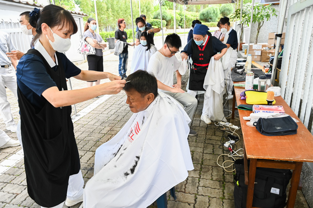 来到静思堂第一件事,志工为许玉銮和帮佣理发。 “看,剪了头发,多清爽好看!” 许玉銮开心地说:“很开心来到这里,认识了许多朋友。从开始洗肾以来,这是我第一次看到这么多人,一起度过了欢乐的一天,很开心!”