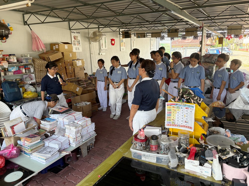新加坡团队把握机会,带领慈少们参访笨珍慈济环保教育站,学习做资源分类。摄/ 李淑晶