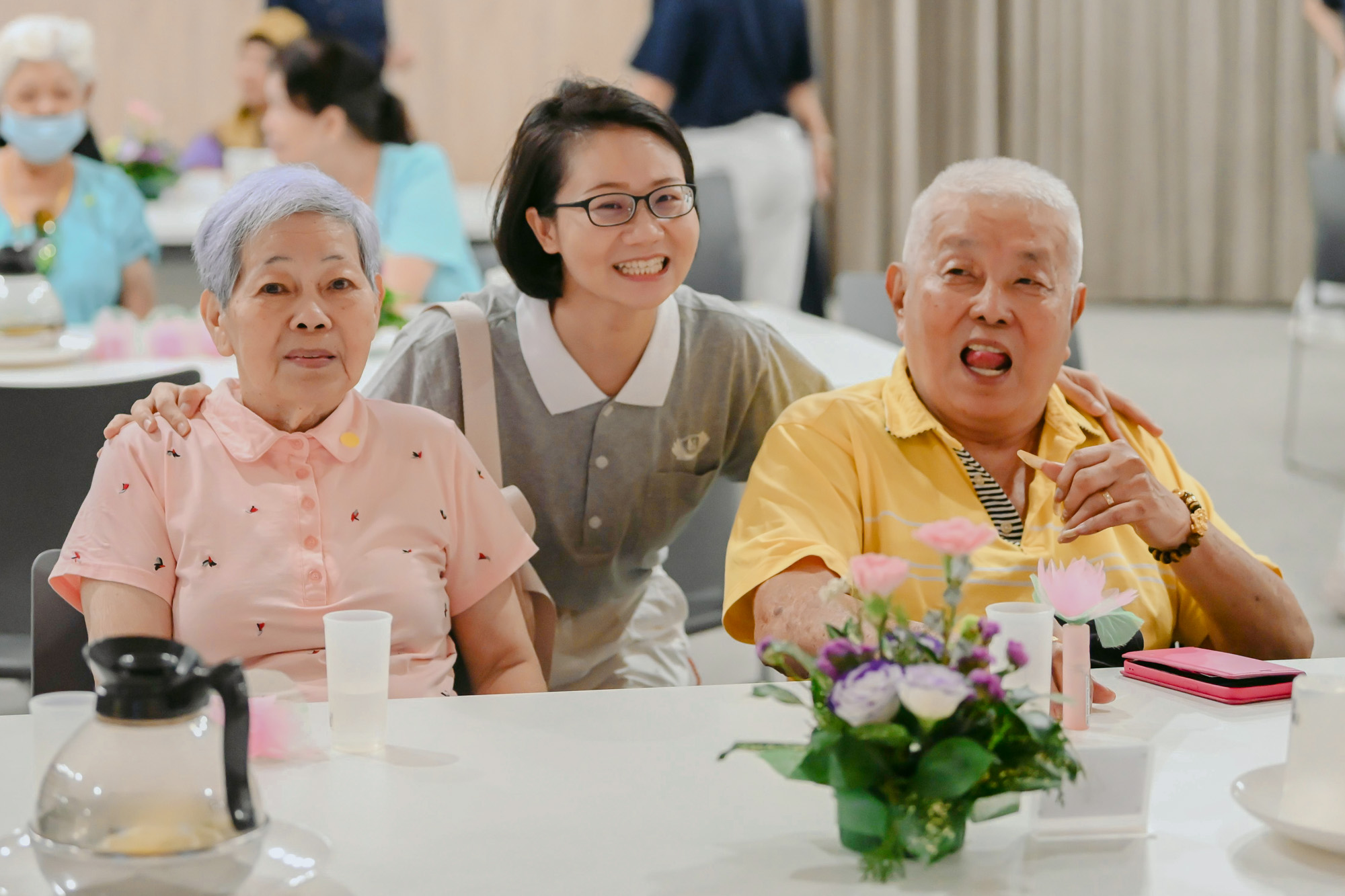 蔡志兴(右)与林亚美(左)非常开心能在志工的陪伴下,参与肾友联谊茶会。摄/蔡佑良