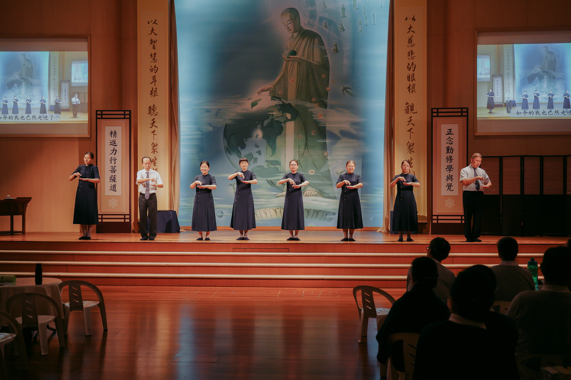 祝福会尾声,准慈委手捧心灯,缓步走向舞台前方,将心灯排出“佛心师志”,象征承诺传承静思法脉、弘扬慈济宗门,照亮未来人间菩萨道的每一步。